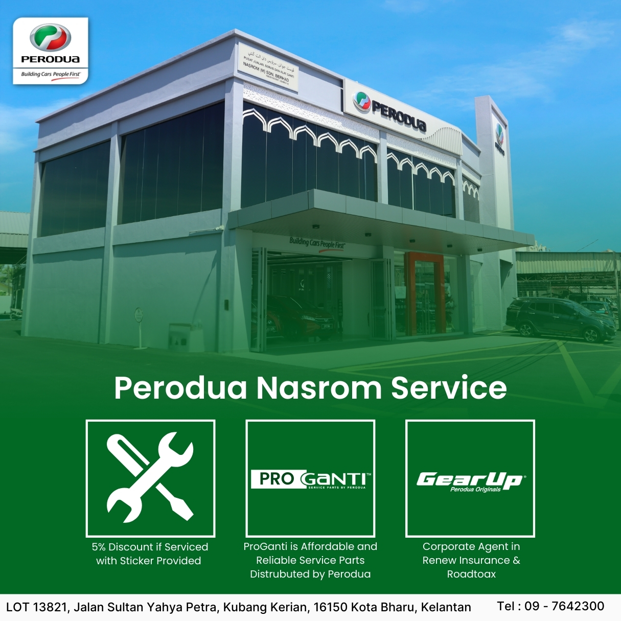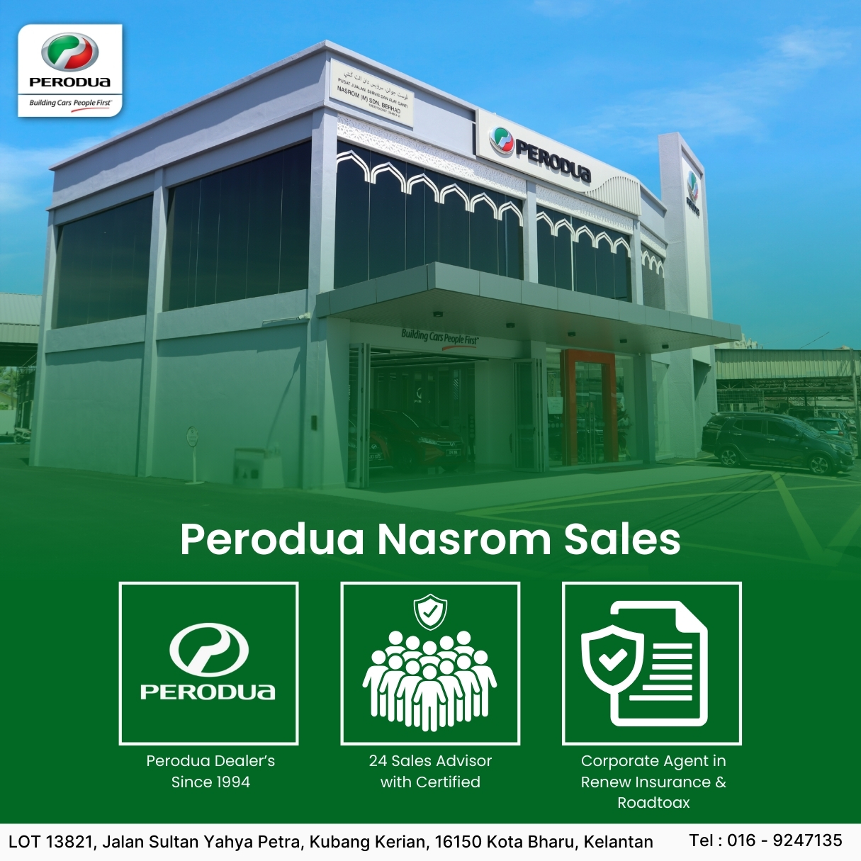 PERODUA NASROM SDN BHD Reg No.: 199301000067 (254804V) Lot 13821, Jalan Sultan Yahya Petra, Kubang Kerian, 16150 Kota Bharu, Kelantan
