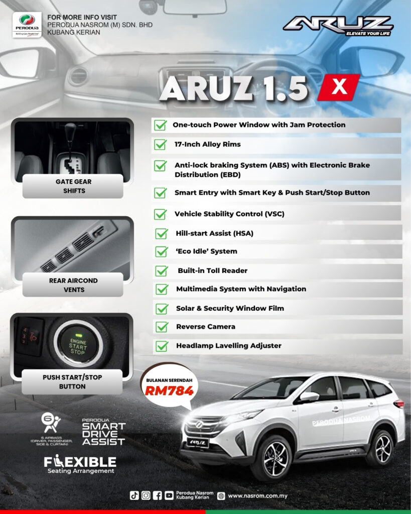Perodua’s 7-seater SUV comes with advanced safety technologies help you detect and prevent potential hazards on the road, so you can feel confident every time you get behind the wheel.