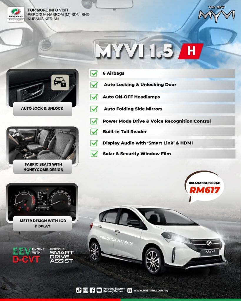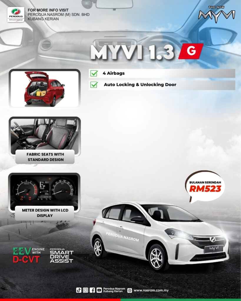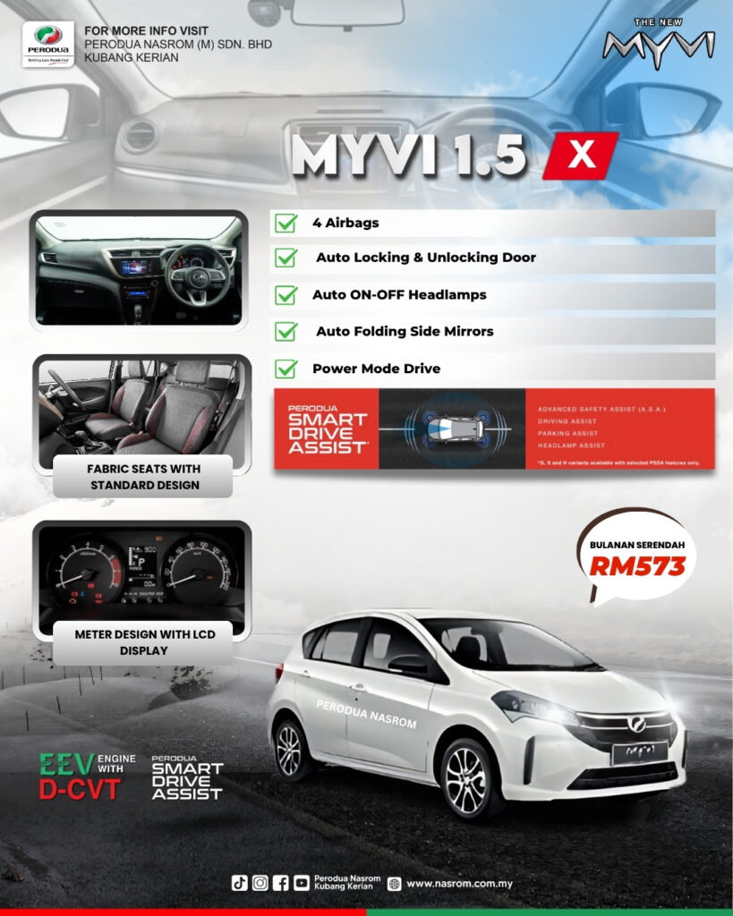Whatever you’re up to and wherever you’re off to, the new Myvi offers more savings and more kilometres for work or play.